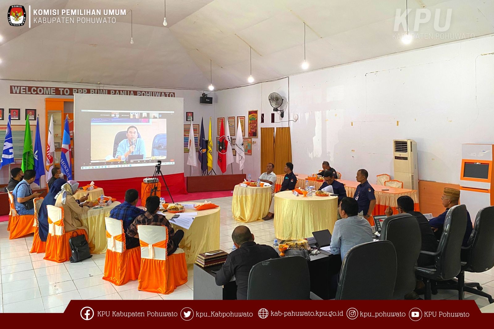 Kegiatan luring dilaksanakan di Gedung B Kantor KPU Kabupaten Pohuwato yang dihadiri oleh Anggota KPU Provinsi Gorontalo Divisi Hukum dan Pengawasan, Ketua dan Anggota KPU Kabupaten Pohuwato, Anggota KPU Kabupaten/Kota Divisi Hukum dan Pengawasan se-Provinsi Gorontalo.