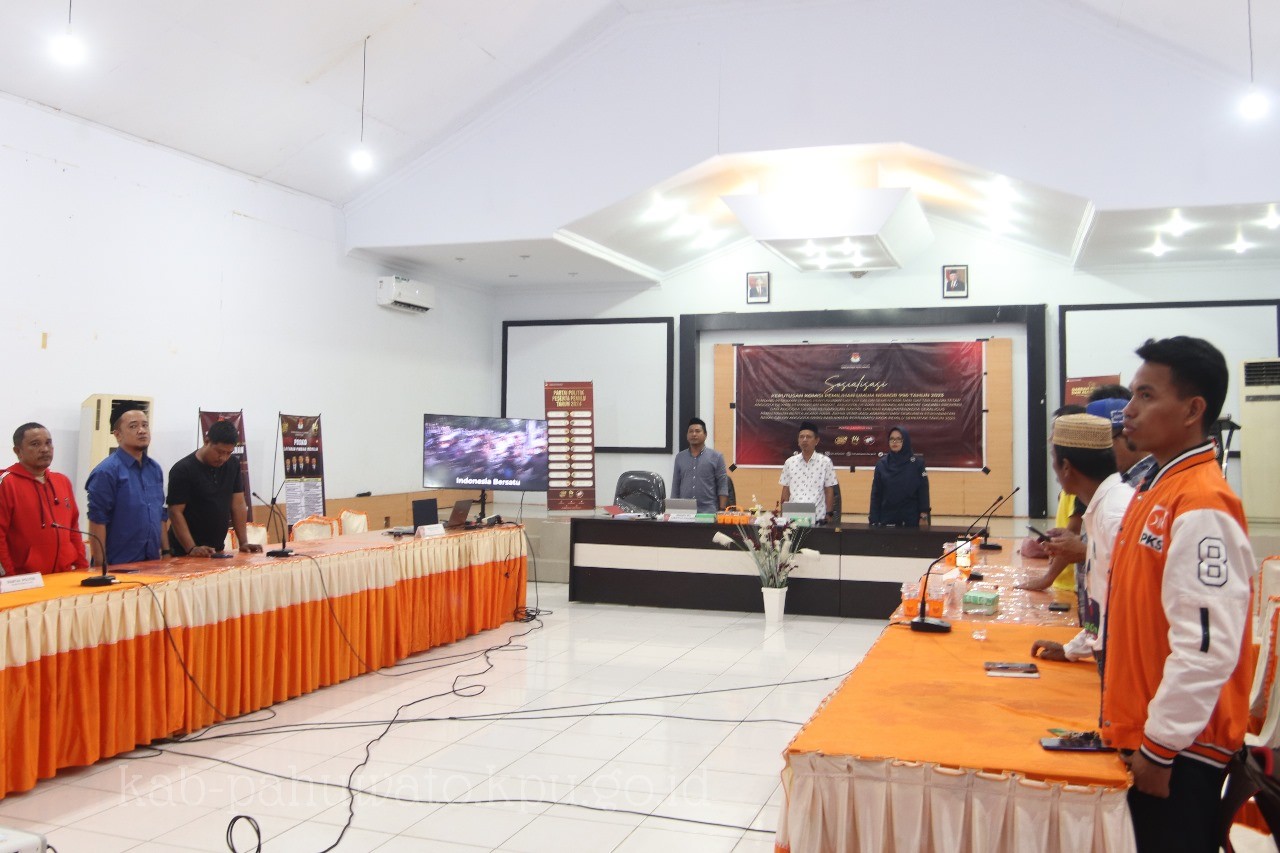 Kumpulkan Pengurus Partai, KPU Pohuwato Sosialisasi Keputusan KPU Nomor 996 Tahun 2023 dan Serahkan Berita Acara hasil akhir Verifikasi Administrasi