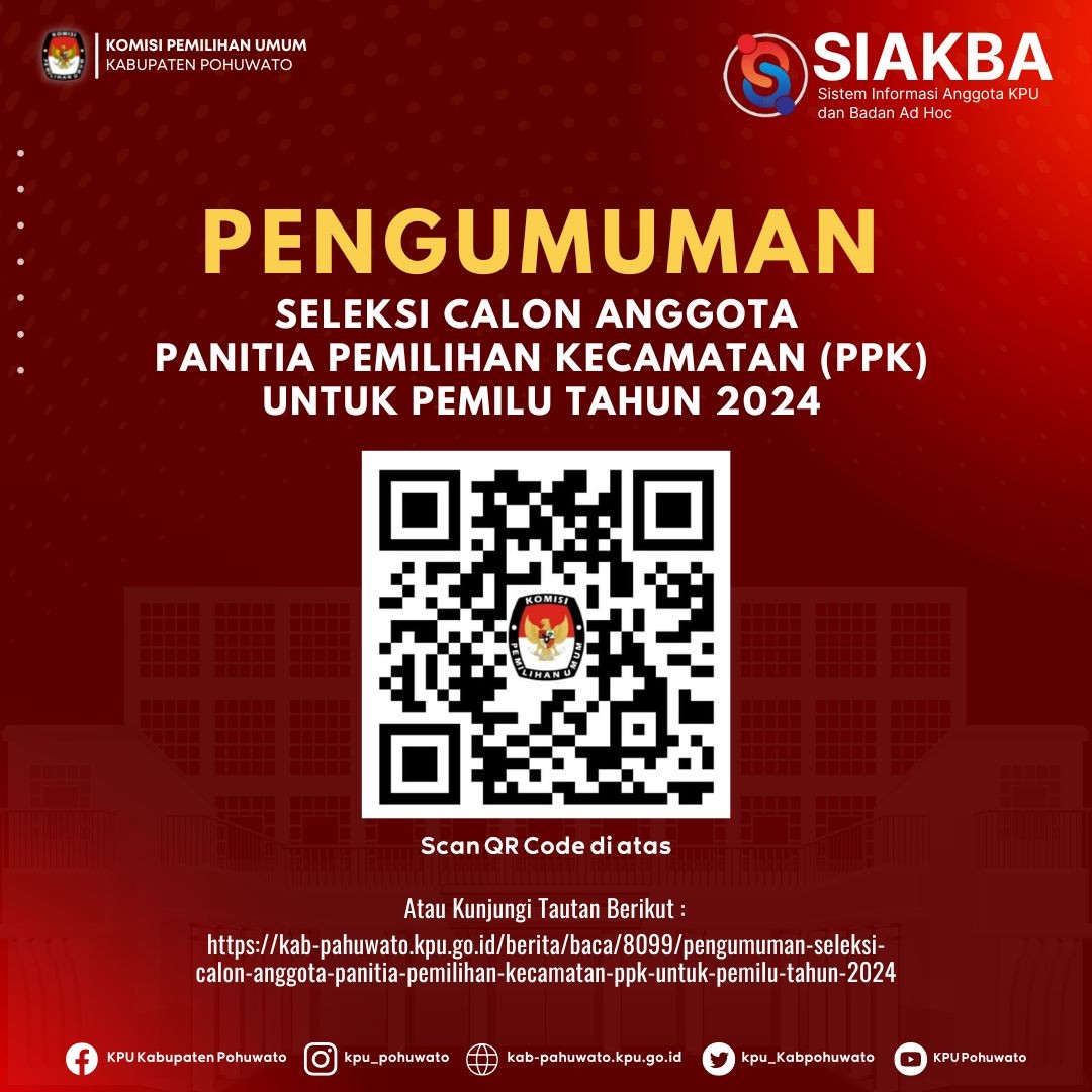 PENGUMUMAN SELEKSI CALON ANGGOTA PANITIA PEMILIHAN KECAMATAN (PPK) UNTUK PEMILU TAHUN 2024