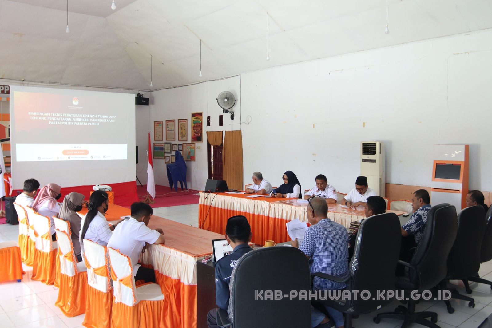 Pohuwato, https://kab-pahuwato.kpu.go.id/ - Ketua KPU Kabupaten Pohuwato, Rinto W. Ali, Anggota KPU Kabupaten Pohuwato Divisi Teknis Penyelenggaraan, Mohamad Iskandar U. Alulu, bersama Kepala Sub Bagian Teknis Penyelenggaraan, Partisipasi dan Hubungan Masyarakat KPU Kabupaten Pohuwato Syafrianto Abd. Rahman serta operator Sistem Informasi Partai Politik (SIPOL), Nur Rahman Pakaya mengikuti Bimbingan Teknis Peraturan KPU tentang Pendaftaran, Verifikasi dan Penetapan Partai Politik Peserta Pemilu serta Pengenalan Fungsi Sistem Informasi Partai Politik (SIPOL) Pemilu Tahun 2024 di Ballroom Puri Agung, Hotel Grand Sahid Jaya, Jakarta, Sabtu (23/07/2022). Pelaksanaan Bimbingan Teknis Kepada KPU/KIP Provinsi dan KPU/KIP Kabupaten/Kota se Indonesia dimaksudkan untuk menyamakan pemahaman penyelenggara pemilu (KPU) dari KPU RI sampai KPU Kabupaten/Kota terhadap Peraturan KPU Nomor 4 Tahun 2022 tentang Pendaftaran, Verifikasi, dan Penetapan Partai Politik Peserta Pemilihan Umum Anggota Dewan Perwakilan Rakyat dan Dewan Perwakilan Rakyat Daerah. Ketua KPU RI, Hasyim Asy'ari, saat membuka kegiatan menekankan bahwa secara berjenjang KPU Provinsi dan Kabupaten/Kota harus segaris dalam pemahaman peraturan dan pengaturan regulasi. Tercatat sebanyak 2.260 peserta terdiri dari Anggota KPU Provinsi Divisi Teknis Penyelenggaraan, Divisi Perencanaan, Data dan Informasi, Kepala Bagian Teknis Penyelenggaraan, Hukum dan SDM, Kasubbag Teknis Penyelenggaraan, Partisipasi dan Hubungan Masyarakat serta Operator, dan Anggota KPU Kabupaten/Kota Divisi Perencanaan, Data dan Informasi, Kasubbag Teknis Penyelenggaraan, Partisipasi dan Hubungan Masyarakat serta Operator mengikuti kegiatan yang digelar di tiga titik lokasi berbeda. Masing-masing di Hotel Grand Sahid Jaya, Hotel Grand Mercure dan Hotel Harris Vertu Jakarta dan berlangsung selama 3 hari, 23-25 Juli 2022. (***)