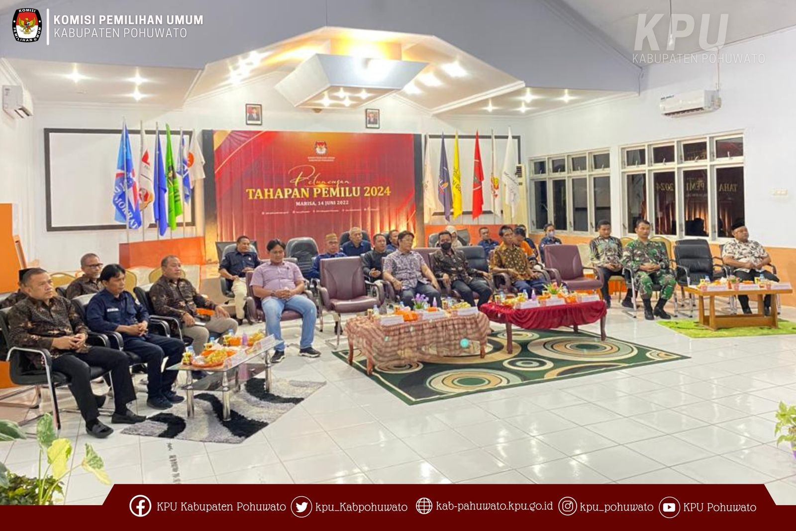 Pohuwato, kab-pahuwato.kpu.go.id - Komisi Pemilihan Umum Kabupaten Pohuwato menggelar kegiatan nonton bersama Peluncuran Tahapan Pemilu Tahun 2024, di Gedung B, Kantor KPU Kabupaten Pohuwato, Jalan M.H. Thamrin Kawasan Perkantoran, Palopo, Marisa, Selasa (14/6/2022). Nonton bersama Peluncuran Tahapan Pemilu Tahun 2024 merupakan penanda dimulainya tahapan pemilihan umum serentak Tahun 2024. Mengundang Forkopimda dan para pemangku kepentingan berkaitan lainnya, KPU Kabupaten Pohuwato menyediakan fasilitas nonton bersama Peluncuran Tahapan Pemilu Tahun 2024 yang diselenggarakan KPU Republik Indonesia via zoom metting. Ketua KPU Republik Indonesia, Hasyim Asy'ari dalam sambutannya menyatakan salah satu ciri demokrasi adalah dilaksanakannya pemilu secara reguler. Regularitas pemilu di Indonesia adalah lima tahunan. Dan ini amanat konstitusi kita. “Saya kira kita paham pasal 22 E Undang-Undang Dasar 1945 mengamanatkan, azas pemilu itu, selain luber dan jurdil, ada satu lagi, yaitu diselenggarakan setiap lima tahun sekali. Jadi regularitas pemilu 5 tahun sekali adalah azas pemilu. Dan sudah jadi tugas penyelenggara pemilu memastikan pemilu berjalan secara reguler lima tahunan itu,” kata Hasyim. Hasyim menjelaskan, salah satu prinsip berbangsa adalah musyawarah mufakat. Musyawarahpun menggambarkan konflik. Karena masing-masing punya pandangan, pendapat dan kepentingan. Tapi, yang dicari dan dituju adalah mufakat. “Oleh karena itu kita memaknai bahwa pemilu ini sebagai arena musyawarah besar rakyat indonesia. Untuk memilih pemimpin-pemimpinnya. Untuk menata kemajuan bangsa kedepan, tetapi sekali lagi dalam bingkai negara kesatuan indonesia,” jelas Hasyim. Lebih lanjut Hasyim menegaskan bahwa dalam pemilu secara langsung, terdapat tiga hal penting. “Setidak-tidak ada tiga hal penting yang harus tersedia. Yang pertama adalah peserta pemilu, yang kedua adalah adanya pemilih dan kemudian yang ketiga adalah ada proses untuk mengekspresikan pilihan bagi pemilih,” tegasnya. Oleh karena itu, kata Hasyim, ketersediaan atau jaminan adanya partai politik sebagai peserta pemilu, adanya calon DPD sebagai peserta pemilu DPD, adanya pasangan calon Presiden dan Wakil Presiden itu menjadi sesuatu yang penting. Demikian juga menjadi tugas kita bersama untuk menjamin bahwa warga negara yang memiliki hak untuk menjadi pemilih, kita masukan dalam daftar pemilih sebagai jaminan administratif bahwa warga negara memiliki hak dan dapat menggunakan hak pilihnya pada pemilu 2024. Sementara itu, Ketua KPU Kabupaten Pohuwato Rinto W. Ali mengajak masyarakat Pohuwato berpartisipasi aktif untuk demokrasi Pohuwato yang berkualitas pada gelaran Pemilu dan Pemilihan yang digelar. Selain dihadiri Ketua dan Anggota KPU Kabupaten Pohuwato, kegiatan yang dimulai sejak pukul 20.00 Wita. juga dihadiri Bupati Pohuwato yang diwakili Kepala Badan Kesbangpol Kabupaten Pohuwato, Hikman Katohidar, Kapolres Pohuwato diwakil Kasat Intelkam Georgie A. Sakul, S.I.K., Ketua Pengadilan Kelas II Marisa diwakili Panitera I Ketut Sukadana, Dandim 1313 Pohuwato yang diwakil Pasi Intel Dim Eko S., Achmad Djuuna Kepala Dinas Dukcapil, Kadir Amran Kadis Infokom dan Statistik serta Ketua Bawaslu Ramlan yang didampingi Anggota Bawaslu Rahmawaty Dj. Pahabu serta Korsek Bawaslu Rahmat Djakaria.***