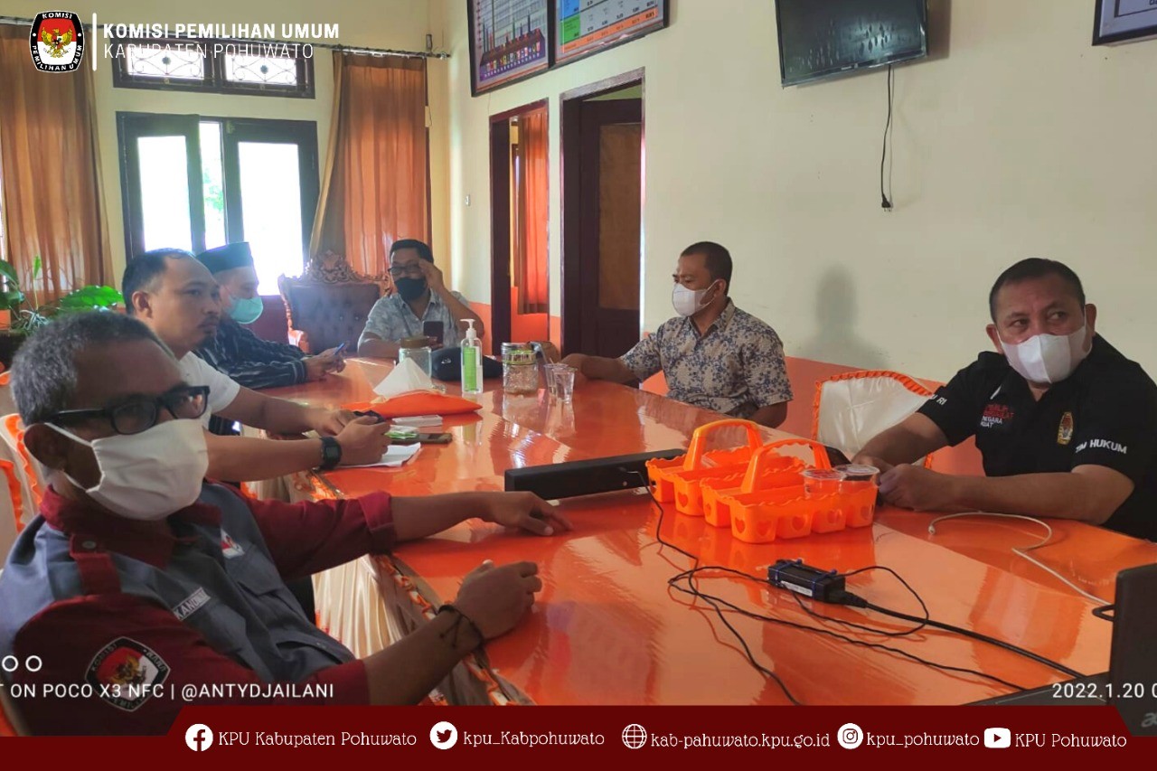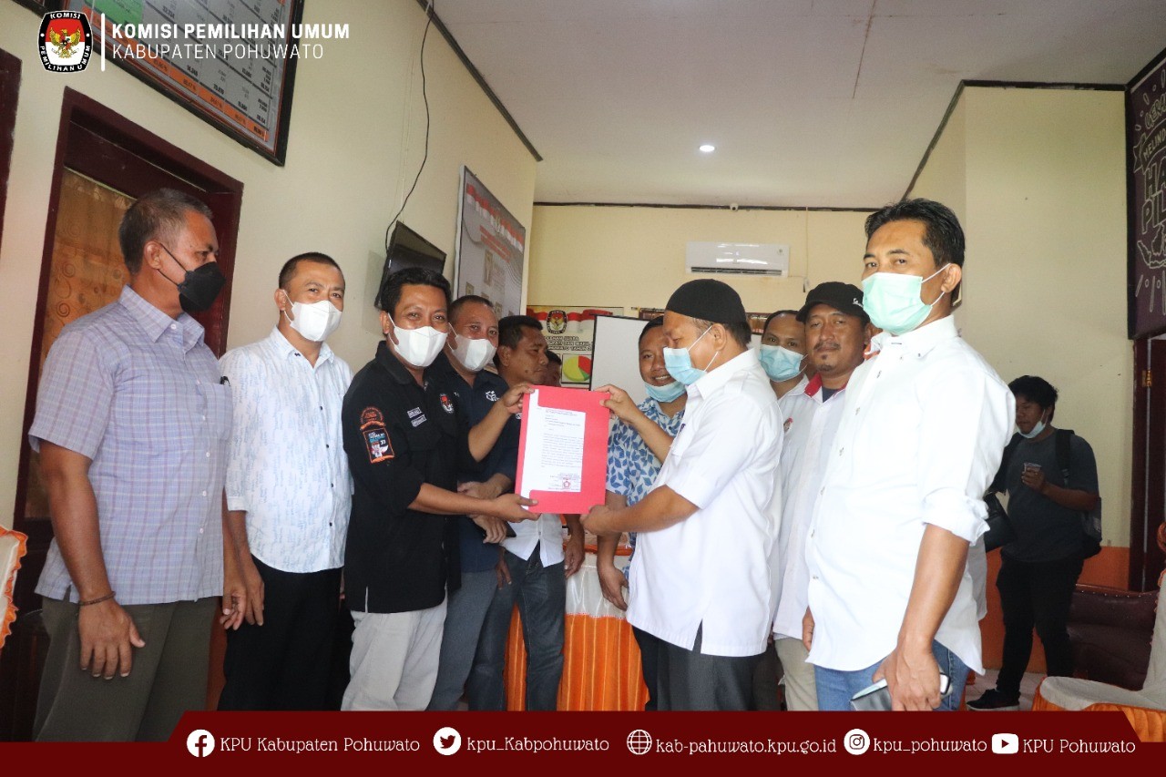 Pohuwato - Ketua dan Anggota KPU Kabupaten Pohuwato menerima kunjungan Pengurus Dewan Pimpinan Cabang Partai Gerindra Kabupaten Pohuwato di Gedung C, (18/01/2022). Sekertaris DPC Partai Gerindra Amir Sidariman menyampaikan Kunjungan DPC Partai Gerinda dalam rangka Penyampaian Surat Keputusan DPP Partai Gerakan Indonesia Raya (GERINDRA) Nomor : 08-0171Kpts/DPP-GERINDRA/2021 Tanggal 21 Agustus 2021 Tentang Susunan Personalia Dewan Pimpinan Cabang Partai Gerakan Indonesia Raya Kabupaten Pohuwato Provinsi Gorontalo sekaligus untuk update informasi pemilu dan pemilihan 2024 mendatang. Menanggapi hal tersebut, Ketua KPU Kabupaten Pohuwato Rinto W. Ali mengucapkan apresiasi dan terimakasih telah menyampaikan SK Susunan Personalia DPC ini secara langsung. Ia mengungkapkan kunjungan ini merupakan kunjungan pertama Parpol di KPU Pohuwato di tahun 2022. Rinto juga menambahkan dalam pelaksanaan pemilu maupun pemilihan selaku penyelenggara tentu kami (KPU) akan bekerja secara professional, objektif dan tanpa ada tekanan dari pihak manapun. Sementara itu, Koordinator Divisi Teknis Penyelenggaraan Mohamad Iskandar U. Alulu mengingatkan jangan sampai ada perbedaan di SK yang disampaikan dengan pada saat verifikasi faktual, Tentu faktual harus sesuai dengan yang dilaporkan di pusat KPU RI karena kita menggunakan Sistem Informasi Partai Politik (SIPOL). Lebih lanjut, Koordinator Divisi Hukum dan Pengawasan Haryanto Malik menambahkan terkait jadwal tahapan pemilu dan pemilihan 2024 kami masih menunggu keputusan dari KPU RI. Sebagai penutup, Sekretaris beserta jajaran pengurus DPC Partai Gerindra Kabupaten Pohuwato menyerahkan SK Tersebut secara langsung kepada Ketua yang didampingi Anggota KPU Kabupaten Pohuwato.