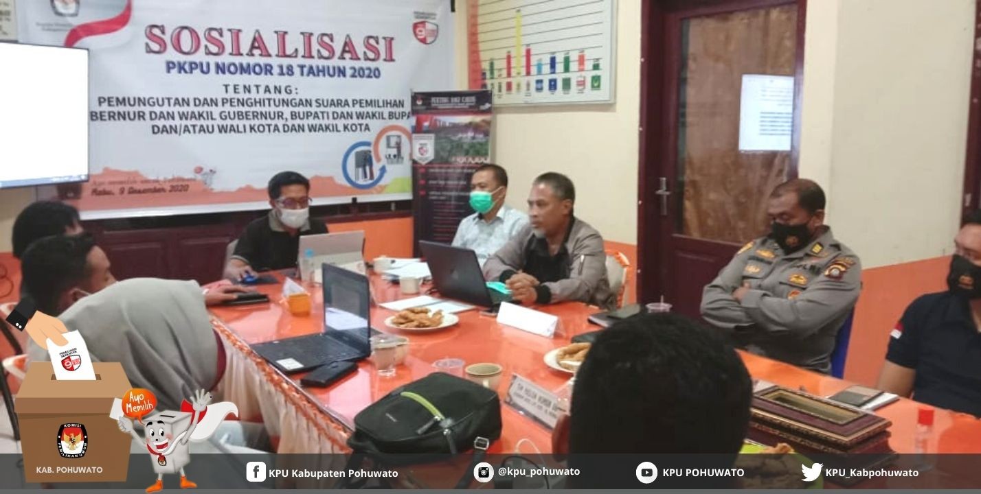 HUPMAS – Komisi Pemilihan Umum Kabupaten Pohuwato menggelar sosialisasi tatap muka, terkait mekanisme petunjuk teknis pemungutan dan penghitungan suara pada Pilkada 9 Desember 2020 mendatang kepada Tim Bakal Pasangan Calon pemilihan Bupati dan Wakil Bupati Pohuwato Tahun 2020, Sabtu(28/11/2020) Kegiatan yang dilaksanakan di ruang rapat KPU Pohuwato tersebut dipimpin langsung Ketua KPU Pohuwato Rinto W. Ali didampingi Komisioner Divisi SDM dan Parmas, Musmulyadi Hunowu, dan Komisioner Divisi Teknis Penyelenggaraan, Iskandar Alulu. “Dasar hukum pelaksanaan sosialisasi ini adalah PKPU Nomor 18 Tahun 2020 tentang perubahan atas Peraturan KPU Nomor 8 Tahun 2018 tentang Pemungutan dan Penghitungan Suara Pada Pemilihan Gubernur dan Wakil Gubernur, Bupati dan Wakil Bupati serta Walikota dan Wakil Walikota,” katanya. Selain itu, beliau menambahkan bahwa dasar hukum lainnya, adalah PKPU Nomor 13 Tahun 2020 tentang Pelaksanaan Pilkada Gubernur dan Wakil Gubernur, Bupati dan Wakil Bupati serta Walikota dan Wakil Walikota Lanjutan Tahun 2020 Dalam Kondisi Bencana Nonalam Corona Virus Disease Tahun 2019. Terkait pelaksanaan pemungutan dan penghitungan suara, nantinya akan diterapkan kepatuhan terhadap protokol kesehatan, di mana seluruh TPS akan dilengkapi dengan alat pendukung prokes. Demikian juga para pemilih diharuskan menggunakan masker serta petugas penyelenggara harus mengenakan APD lengkap. “Dalam Pilkada kami utamakan keselamatan semua orang jadi dalam proses pemilihan dan penghitungan suara nanti kami mengikuti protokol Kesehatan, ” jelasnya. Komisioner Divisi Teknis Penyelenggaraan, Iskandar Alulu menambahkan, teknis pemungutan dan penghitungan suara, di samping kepatuhan terhadap Prokes, juga legalitas pendamping pemilih disabilitas dan orangtua jompo. Keabsahan perpindahan pemilih antar kecamatan serta keabsahan pemilih dengan membawa identitas diri E-KTP dan identitas lainnya. Sementara itu, Komisioner Divisi Sosialisasi Parmas dan SDM Musmulyadi Hunowu mengatakan bahwa ada 15 hal baru yang akan diterapkan di TPS nanti. “Penyelenggaraan Pilkada di masa pandemi Covid-19 tahun 2020 ini juga ditetapkan jumlah pemilih dalam satu TPS yakni maksimal 500 orang dan jadwal pencoblosan juga ditetapkan dimulai sejak pukul 07.00 – 13.00 WITA (disesuaikan waktunya agar tidak terjadi penumpukan pada jam-jam tertentu). Adanya, larangan berdekatan (physical distancing), tidak bersalaman di TPS, wajib mencuci tangan, setiap pemilih wajib menggunakan masker saat datang ke TPS, tersedianya sarung tangan plastik di TPS untuk para pemilih, petugas TPS akan menggunakan pelindung wajah, akan disediakan masker ganti, para pemilih juga diharuskan membawa alat tulis sendiri, tersedianya tisu kering, pengukuran suhu tubuh, selain itu TPS akan disemprot disinfektan, penggunaan tinta tetes dan yang terakhir, adalah tersedianya bilik khusus bagi yang sakit,” paparnya. Selanjutnya, beliau berharap kepada para Tim Paslon dapat menjadi corong informasi dengan menyampaikan segala hasil sosialisasi ke seluruh pendukungnya disaat kampanye. “Ini merupakan upaya mensosialisasikan kepada masyarakat tentang cara dalam pelaksanaan pemungutan dan perhitungan suara di TPS. Di mana dengan adanya sosialisasi ini, Tim paslon dapat melanjutkan informasi ini kepada masyarakat pendukungnya,” katanya. “Untuk itu, kiranya informasi penting ini dapat terserap oleh masyarakat dan pelaksanaan Pilkada pada tanggal 9 Desember 2020 nanti, dapat menjamin keselamatan dan kenyamanannya serta dapat terlaksana dengan baik, ” pintanya. Dalam pertemuan itu juga membahas persiapan pelaksanaan debat antar paslon Pemilihan Bupati dan Wakil Bupati Pohuwato Tahun 2020. Sebagai informasi, Pelaksanaan Debat Publik terakhir antar paslon digelar pada Sabtu 5 Desember mendatang di Kabupaten Pohuwato. Hal ini sesuai kesepakatan bersama masing-masing Tim Paslon “Jika pelaksanaan debat sebelumnya dilaksanakan di Kota Gorontalo, namun untuk Debat Publik antar paslon terakhir ini pelaksanaannya di Kabupaten Pohuwato, untuk lokasinya masih kita (KPU) survei”, bebernya. “Tentunya kita semua sama-sama berharap, penyelenggaraan Pemilihan Kepala Daerah di Kabupaten Pohuwato Tahun 2020 dapat berjalan dengan damai, aman, lancar serta berkualitas. Untuk mewujudkan itu semua, perlu adanya kerjasama dari kita semua, ” harapnya. Turut hadir dalam acara, Anggota Bawaslu, perwakilan Kodim 1313/Pht, dan Polres Pohuwato. (ADj)