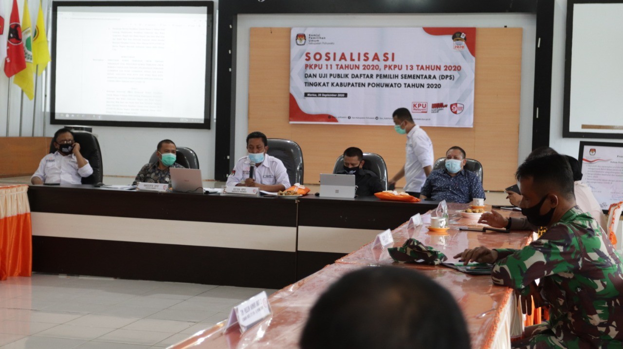 HUPMAS – Komisi Pemilihan Umum Daerah (KPUD) Kabupaten Pohuwato, mengintensifkan sosialisasi atau pendidikan politik menjelang Pemilihan Serentak 2020 dengan menyasar hingga daerah terpencil di Pohuwato. Dalam melakukan sosialisasi, hadir sebagai narasumber anggota Komisioner KPUD Pohuwato Divisi Sosialisasi, Partisipasi Masyarakat dan SDM, Musmulyadi Hunowu, Komisioner Divisi Teknis Penyelenggaraan, Iskandar Alulu, dan Komisioner Divisi Hukum dan Pengawasan, Haryanto Malik.. Pandemi Covid-19 memberi nuansa berbeda dalam pelaksanaan Pilkada Serentak kali ini. Sebab pelaksanaan pilkada kali ini harus disesuaikan dengan penerapan protokol kesehatan (prokes) untuk mencegah penyebaran Covid-19 yang belum ada obat atau vaksinnya tersebut. Karena itu, Komisi Pemilihan Umum (KPU) Pohuwato beserta jajarannya di tingkat Kecamatan/Desa, khususnya yang menjadi pelaksana pilkada, lagi gencar-gencarnya melakukan sosialisasi Sembilan Hal Baru di TPS (Tempat Pemungutan Suara). Musmulyadi dalam sambutannya mengatakan, langkah ini diharapkan bisa menggenjot tingkat partisipasi pemilih dalam situasi Pandemi Covid-19. Lebih lanjut dikatakan bahwa, sosialisasi ini untuk memastikan masyarakat dapat memberikan hak pilihya pada Pemilihan Bupati dan Wakil Bupati Pohuwato pada tanggal 9 Desember 2020 mendatang dan diintensifkan kepada pemilih berbasis warga di kawasan terpencil. “Sosialisasi kita intensifkan termasuk melibatkan PPK dan PPS di masing-masing wilayah untuk terjun langsung ke pelosok desa terpencil yang minim informasi. Kami harus melakukan diferensiasi kegiatan sosialisasi. Dan yang paling penting adalah sosialisasi mengenai Sembilan Hal Baru di TPS. Supaya masyarakat selaku pemilih mengetahui dan memahami bahwa datang ke TPS itu aman,” ujarnya, Rabu (14/10/2020). Sejumlah daerah terpencil yang tengah diintensifkan sosialisasinya kali ini berada di Kecamatan Lemito Desa Lomuli. Sementara itu Jafar Tangahu selaku Sekretaris PPK Kecamatan Lemito mengatakan, pihaknya mengapresiasi KPU Kabupaten Pohuwato atas kegiatan sosialisasi yang dilakukan dalam memberikan pendidikan atau pemahaman kepada masyarakat yang ada di desanya. “Dengan sosialisasi ini, kami berharap warga bisa mengetahui seperti apa proses pemilihan yang akan digelar ditengah pandemi nanti, atau mungkin masih ada yang belum dimengerti warga,” ujarnya. Dalam penyampaiannya Musmulyadi menjelaskan tentang 9 (sembilan) hal baru di TPS saat hari pemcoblosan di tanggal 9 Desember 2020 nanti. Adapun Sembilan Hal Baru di TPS yang akan dijumpai saat hari pemungutan suara dalam Pilkada Serentak 9 Desember nanti, antara lain pemilih di TPS maksimal 500 orang pemilih. Pengaturan waktu kedatangan pemilih ke TPS. Kemudian, sebelum pelaksanaan pemungutan suara, TPS akan dilakukan sterilisasi dengan dilakukan penyemprotan disinfektan. Petugas KPPS yang akan bertugas di TPS dalam kondisi sehat dan menerapkan protokol kesehatan. Berikutnya, setiap pemilih akan di cek suhu tubuhnya. Setiap pemilih juga diwajibkan memakai masker saat akan menggunakan hak pilihnya di TPS. Akan disediakan sarung tangan sekali pakai bagi pemilih saat akan menggunakan hak pilihnya di bilik suara. Selanjutnya, paku untuk alat coblos akan disterilisasi setiap saat oleh KPPS. Dan terakhir, setiap pemilih yang telah menggunakan hak suaranya akan di tandai dengan tinta tetes di jari tangannya. Dalam kesempatan yang sama, Komisioner Divisi Teknis dan Penyelenggaraan Iskandar Alulu menjelaskan bahwa pelaksanaan Pilkada Serentak Tahun 2020 di tengah Pandemi Covid-19 telah diatur dalam regulasi PKPU Nomor 13 Tahun 2020. Kepada pemilih Beliau lebih menekankan tentang tahapan Pilkada, syarat pemilih, tata cara pemungutan dan pentingnya berpartisipasi memilih dalam Pemilihan Bupati dan Wakil Bupati Pohuwato Tahun 2020 untuk masa depan Bumi Panua tercinta. Haryanto Malik selaku Divisi Hukum dan Pengawasan mengatakan KPU bersama PPK dan PPS selalu berupaya mengoptimalkan kesempatan yang ada dengan memberikan pengetahuan politik pentingnya berdemokrasi dengan partisipasi masyarakat menggunakan hak pilih. “Pemilu mutlak diperlukan untuk menentukan pemimpin setiap lima tahun sekali, dalam pemerintahan yang menganut sistem demokrasi,”katanya. “Melalui sosialisasi ini, kami berharap masyarakat di Lomuli tidak ketinggalan informasi tentang kepemiluan yang digelar di tengah Pandemi Covid-19 dibanding dengan masyarakat di wilayah lainnya, yang memang sangat mudah mengakses informasi”, ujarnya. Kiranya melalui sosialisasi ini, masyarakat yang berada di kawasan terpencil dapat menerima informasi tentang pelaksanaan pemilihan di tengah Pandemi covid-19, sehingga hal ini dapat meningkatkan angka partisipasi masyarakat. Hadir dalam sosialisasi seluruh anggota PPK Kecamatan Lemito, PPS dan masyarakat Desa Lomuli. Sosialisasi dilakukan dengan presentasi, penyebaran brosur/leaflet, dan dialog/tanya jawab. (ADj)