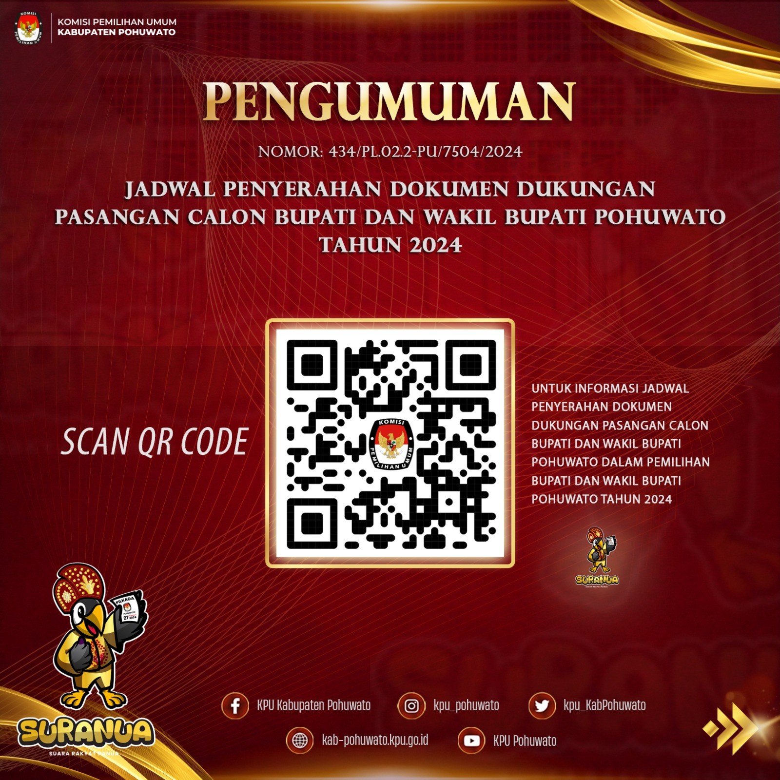 Pohuwato, kab-pahuwato.kpu.go.id - Dalam rangka pembentukan Calon Anggota Panitia Pemungutan Suara untuk Pemilihan Gubernur dan Wakil Gubernur, Bupati dan Wakil Bupati, dan Wali Kota dan Wakil Wali Kota Tahun 2024, Komisi Pemilihan Umum Kabupaten Pohuwato mengundang Warga Negara Indonesia yang memenuhi kualifikasi untuk mendaftarkan diri menjadi Panitia Pemungutan Suara untuk Pemilihan Gubernur dan Wakil Gubernur, Bupati dan Wakil Bupati, dan Wali Kota dan Wakil Wali Kota.